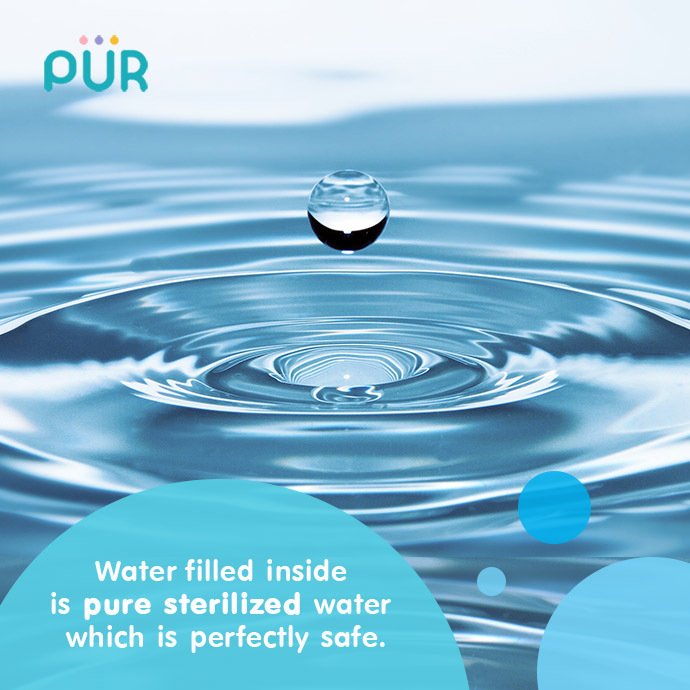 - Water filled inside is pure sterilized water which is perfectly safe.